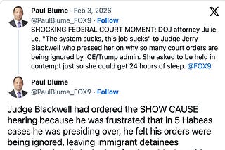Feb 3 | DOJ Admits Court Orders Are Being Ignored